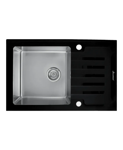 Seaman Eco Glass – изысканная и оригинальная серия моек для кухни. Мойка с двумя отверстиями одно под смеситель, второе под вентиль-автомат (входит в комплект).